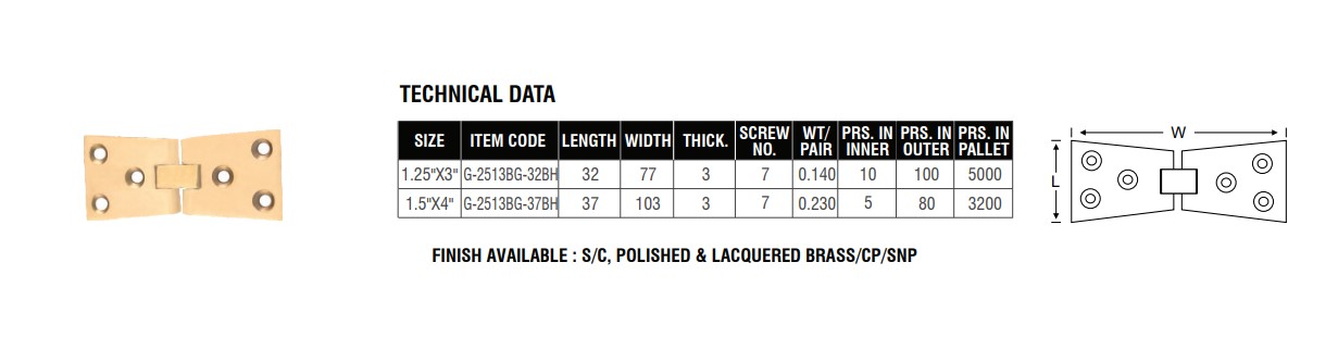 The 2513BG Brass Counter Flap Hinge is designed for use in fold-down surfaces such as bar counters, desks, or serving tables. Made from high-quality brass, it offers durability and a traditional finish that suits both residential and commercial interiors. Its smooth folding action and clean appearance make it a practical and stylish choice for hinged flaps that require frequent movement.