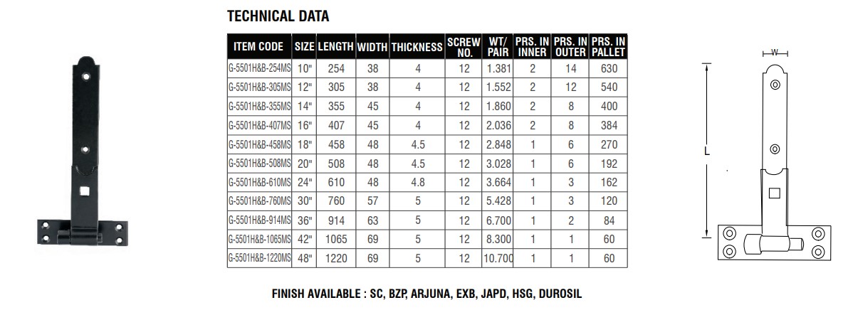 5501 : MILD STEEL HOOK AND BAND HINGE (STRAIGHT)