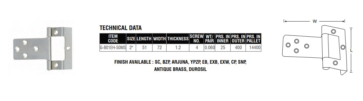 The 801EH Mild Steel Cranked Easy Hang Hinge is engineered to simplify door installation by providing a cranked profile that aids in precise alignment. Made from durable mild steel, this hinge features a fixed pin construction for enhanced strength and long-term reliability. Ideal for timber doors and frames where easy fitting and consistent performance are essential. Suitable for use in residential, commercial, or light industrial settings, it ensures smooth operation and a neat finish.