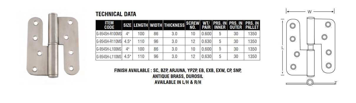 The 954 Mild Steel Supporting Hinge, also known as an Offset Hinge, is designed to provide additional support and alignment for heavier doors or shutters. Featuring a cranked knuckle and handed construction, this hinge ensures a secure and stable fit, ideal for offset or recessed installations. Its mild steel build delivers strength and durability, making it suitable for both residential and commercial settings where structural support is essential.