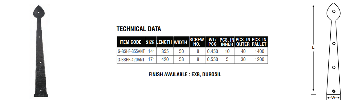 The Black Antique Spear Hinge (Front Mount) offers a bold and traditional aesthetic inspired by medieval ironwork. Designed with a striking spear-shaped tip, this hinge brings period charm and rustic appeal to gates, doors, and cabinets. Crafted from sturdy mild steel and finished in a black antique coating, it combines visual impact with durability. Ideal for restoration work, country homes, and heritage-inspired interiors, this hinge adds a decorative yet functional element to any installation.