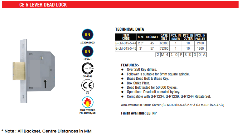 This 5 lever dead lock is CE-certified and built for high security on wooden doors.