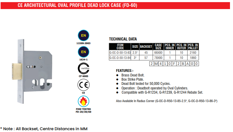 CE ARCHITECTURAL OVAL PROFILE DEAD LOCK CASE (FD-60)