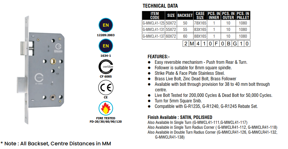The CE Bathroom Lock Body Double Turn (72mm Centre) is a premium-grade internal door lock designed specifically for bathroom privacy and functionality. Featuring a 72mm centre distance (from handle spindle to keyhole/turn), this lock offers compatibility with most standard European bathroom hardware. The double turn mechanism ensures smooth, reliable locking and unlocking from the inside while allowing emergency access from the outside using a coin or screwdriver. Crafted for durability and corrosion resistance, this lock is suitable for residential and commercial applications, delivering both security and user convenience.