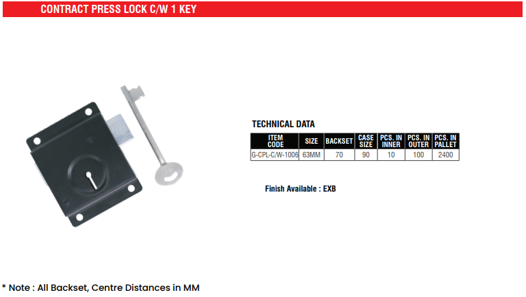 It features a push-to-lock mechanism and comes complete with 1 key for unlocking.