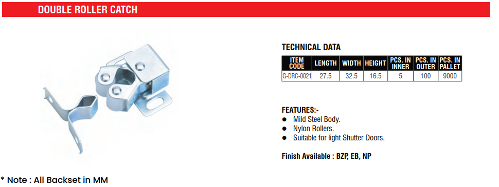The double roller catch features two spring-loaded rollers for firm yet flexible door holding.