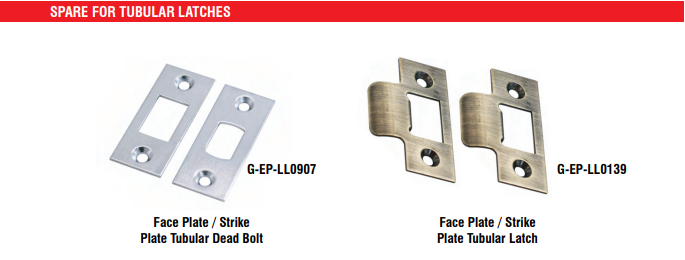 The G-EP-LL0907 is a face plate / strike plate designed for tubular dead bolt locks.