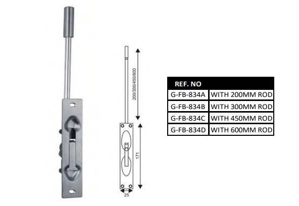 Strong and compact, the G-FB834 Metal Door Flush Bolt offers reliable locking for double doors with a discreet, flush-mounted design.